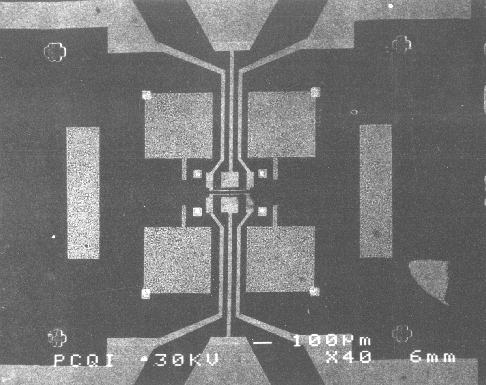 image shows the leads and bonding pads for the split gate structure shown